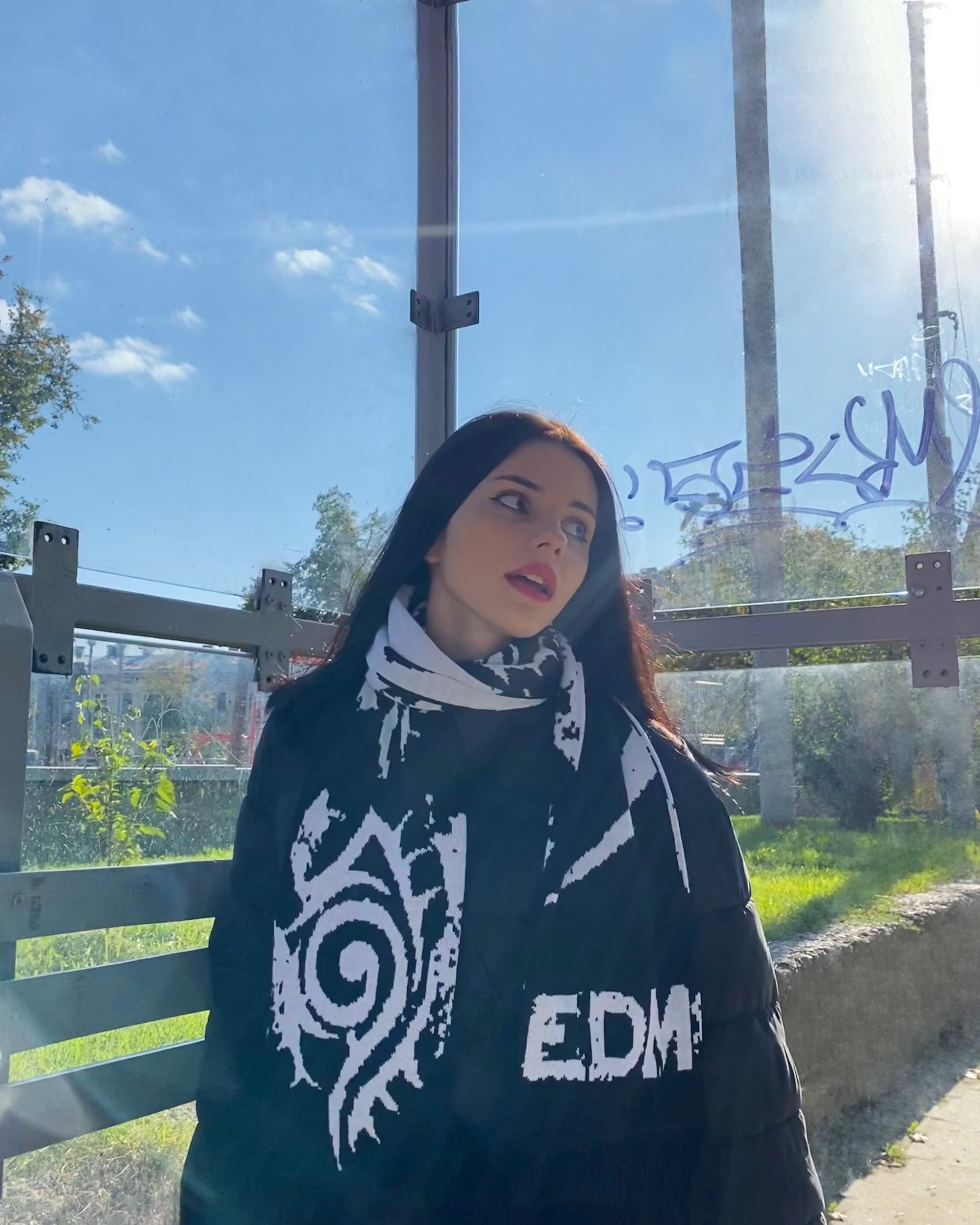 Abyss scarf. Unique tribal design. High-quality machine knitting.