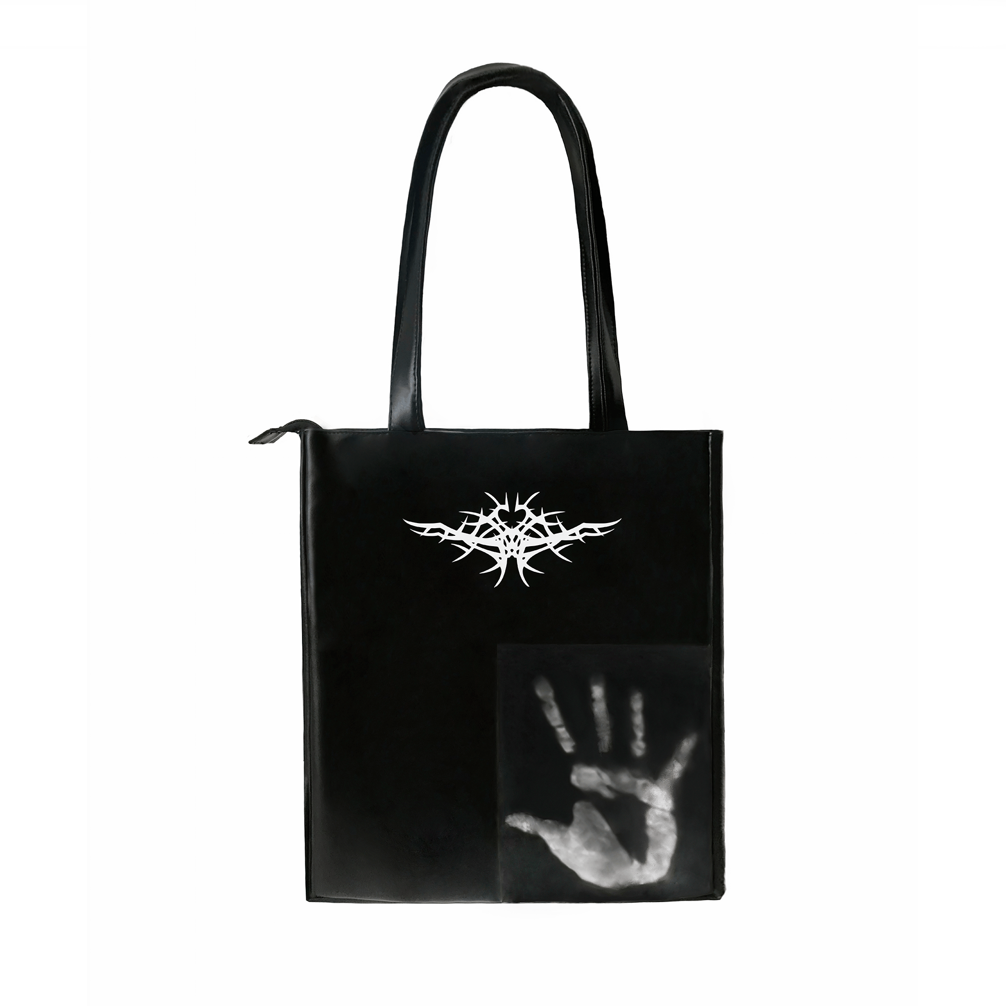 A full-fledged shopper bag made of German matte eco-leather with a patch pocket made of thermochromic fabric (changes color when the temperature changes). Metallic zipper pocket on the top.