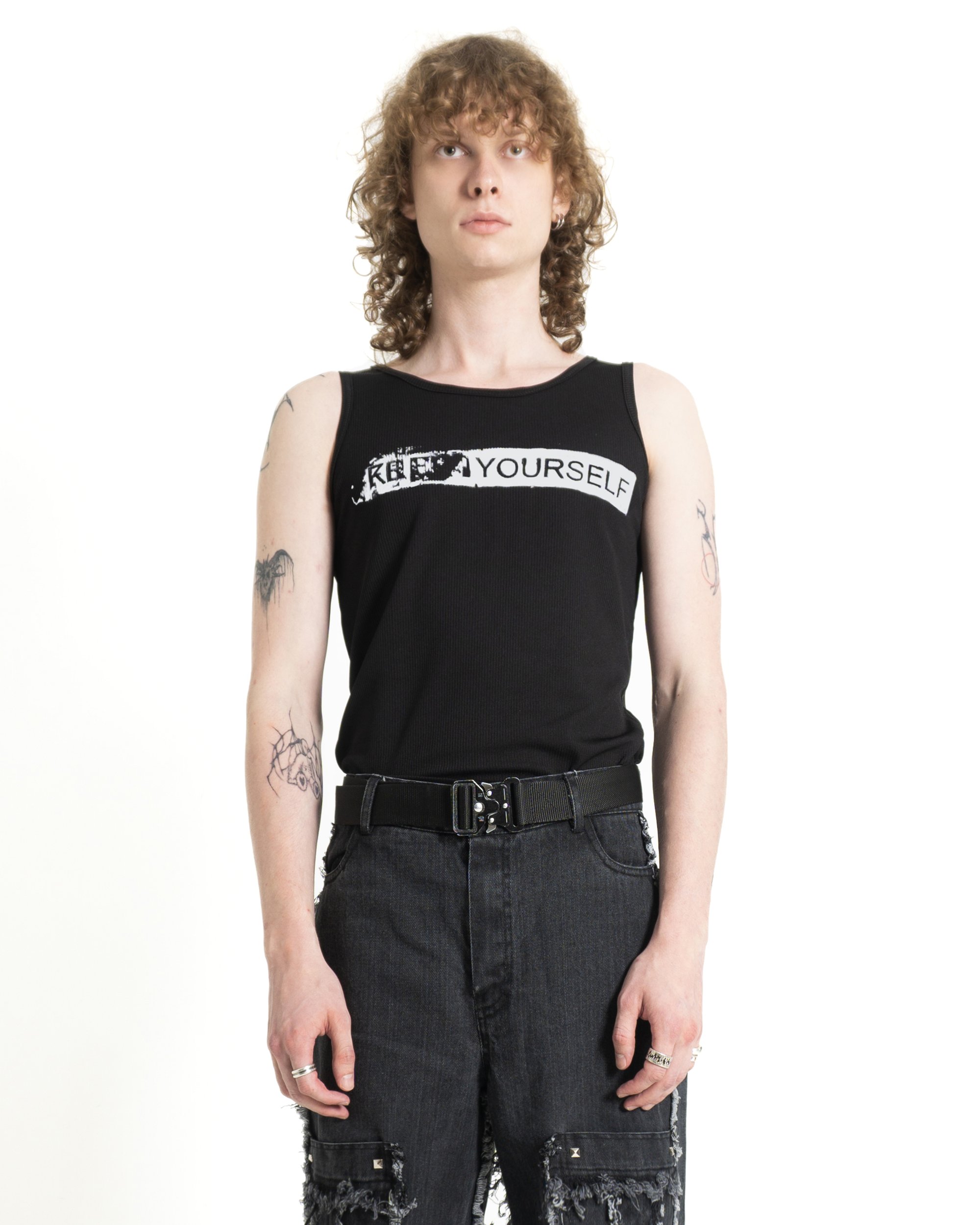 **** Yourself Tank Top in black. Slim unisex fit. Silkscreen print on front. High quality seams. Heavyweight fabric.